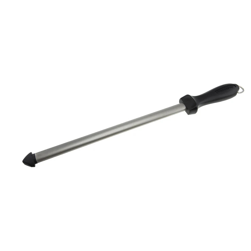 Diamond-cut sharpening steel designed to keep your kitchen knives in peak condition. Features a one-piece construction with clear sightlines for precise sharpening strokes. Built to last with a 5-year guarantee. Savannah's expert-tested kitchenware combines functionality and durability for the serious home cook.