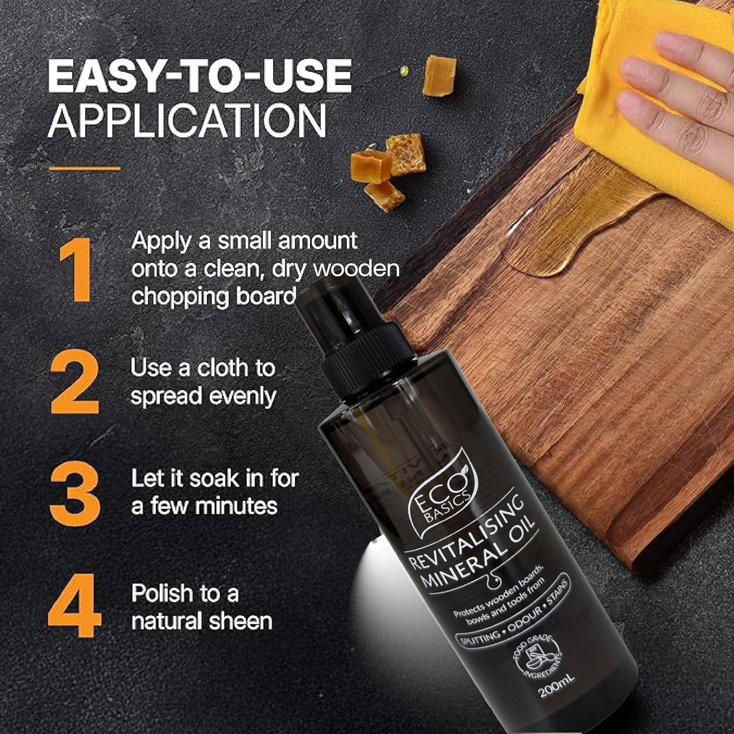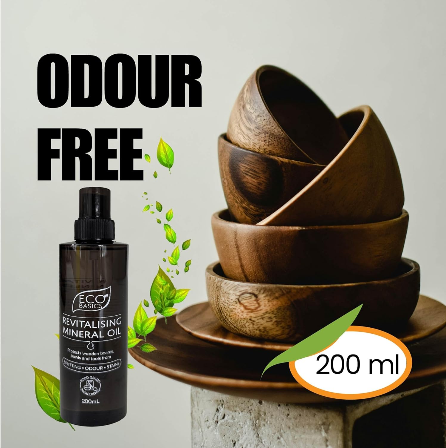 Eco Basics Revitalising Mineral Oil keeps wooden boards, bowls, and utensils in top condition. Made from 100% food-grade mineral oil, it penetrates deep to restore moisture and prevent damage, extending the life of your kitchen essentials.