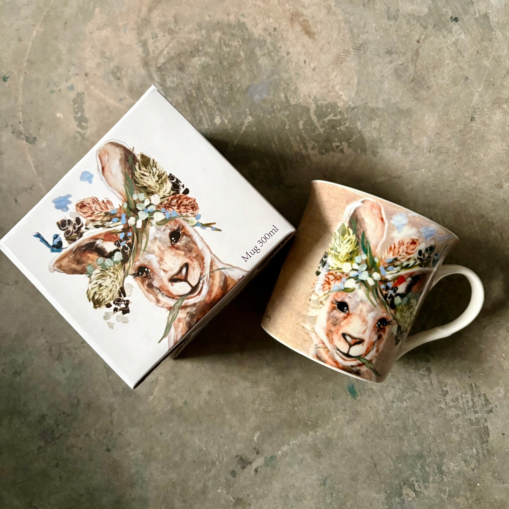 Lilli Rock Australian Art Mug "Kangaroo & Wren Mug"