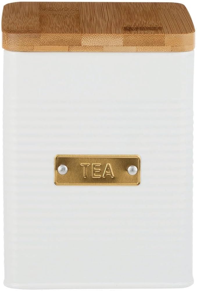 As a professional in the tea storage industry, you can trust Typhoon's Otto Square Tea Storage Tin in white. The modern, ribbed design will elevate any worktop, complemented by a luxurious gold badge. This canister is both hard-wearing and durable, perfect for daily use.The generous 1.6 litre capacity is great for storing teabags or loose tea, while the airtight silicone seal will keep contents fresher for longer. Made from sustainably sourced bamboo and 100% recyclable steel, these canisters are both practical and stylish.